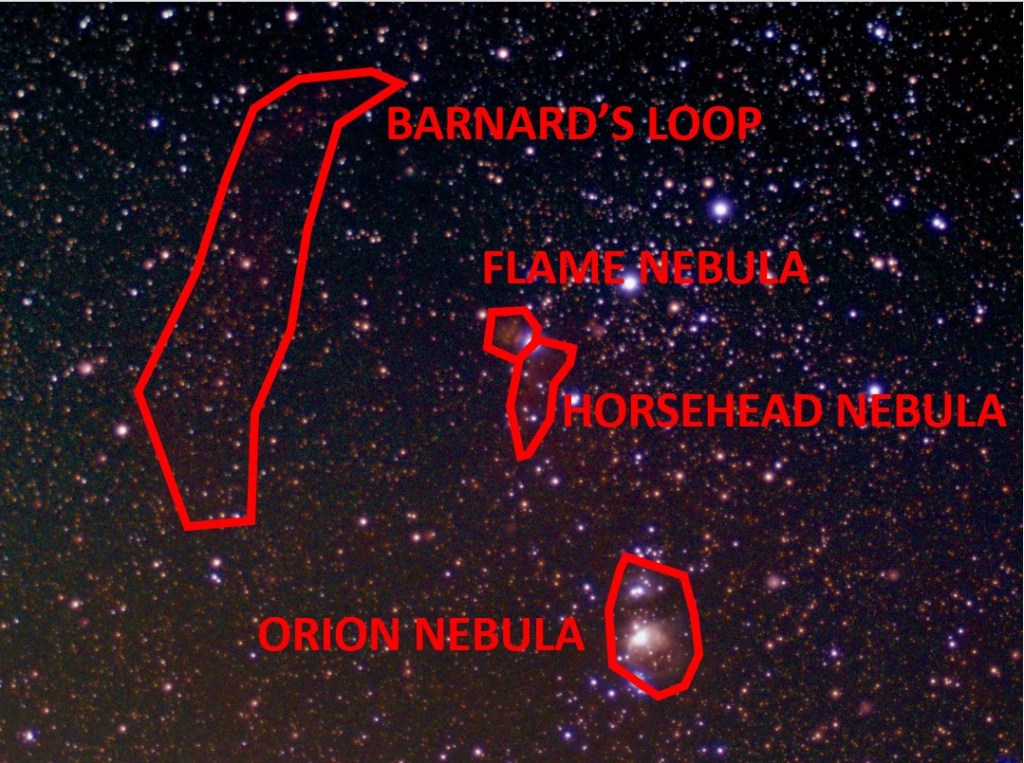 With the infrared filter in place you could see a very faint hint of the Horsehead Nebula surroundings, but they were very subtle. You had to know there was something there and then play with image enhancement to get even a slight hint of it. But it is now more clear.