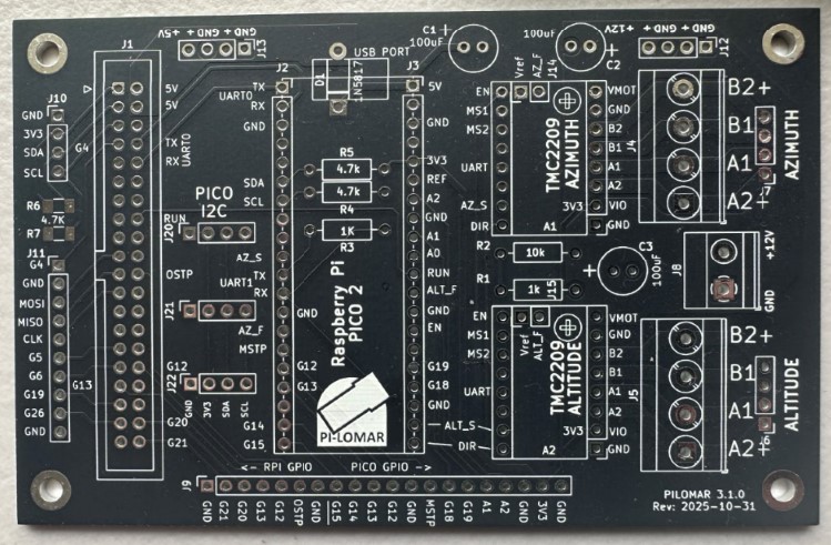 The TMC2209s have other tricks up their sleeve for future development, it looks like they can perform some actions even more autonomously than the DRV8825s, so there may be some more features to introduce still. But I’m really happy so far with the conversion. The telescope will finally sit and work on the desk in front of you and you’ll not notice!